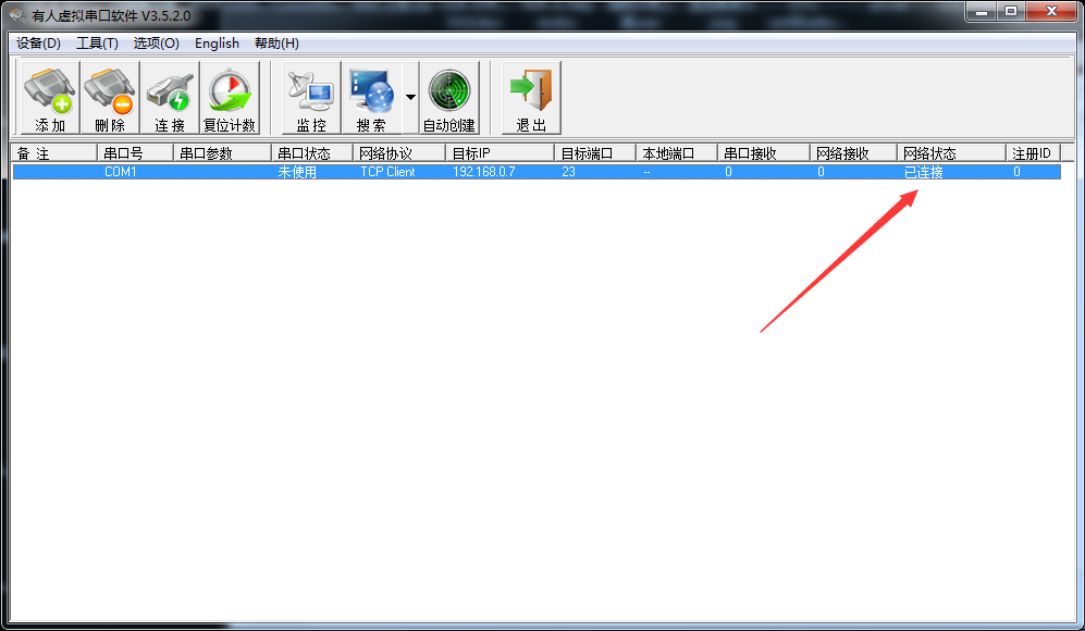 3:com1網(wǎng)絡(luò)狀態(tài)為已連接,說(shuō)明網(wǎng)絡(luò)通信OK。
