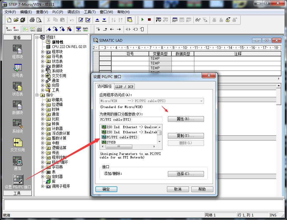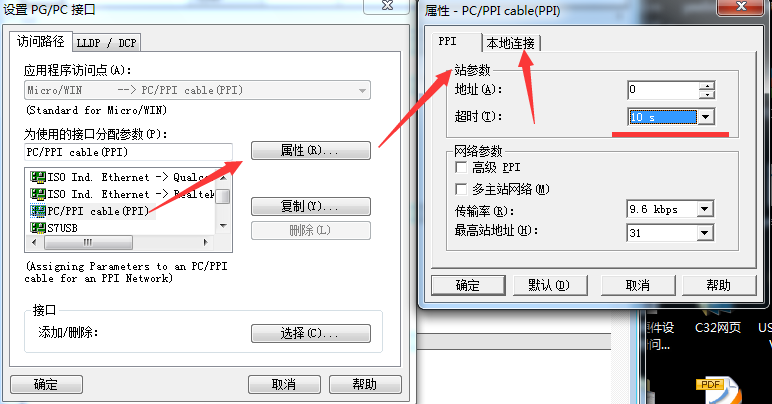 點(diǎn)擊設(shè)置PG/PC接口,選擇PC/PPI,點(diǎn)擊屬性,將超時(shí)時(shí)間設(shè)置大點(diǎn),設(shè)置10S或者100S.然后點(diǎn)擊本地連接選擇剛才虛擬的串口com1.