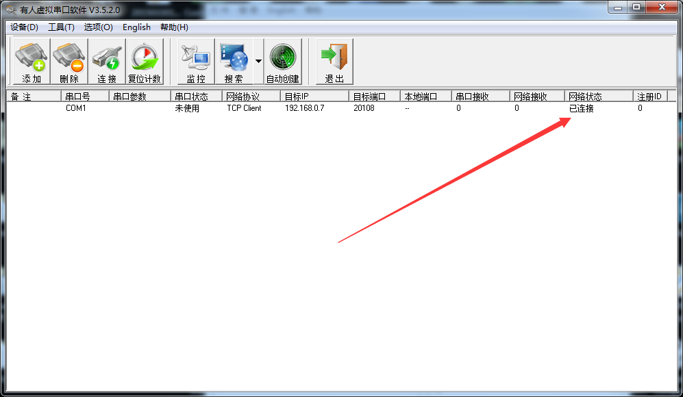 4:com1網(wǎng)絡(luò)狀態(tài)為已連接,說明網(wǎng)絡(luò)通信OK。