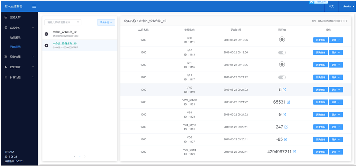 4、完成設(shè)置,云臺(tái)即可監(jiān)控PLC數(shù)據(jù),可以畫云端組態(tài)圖