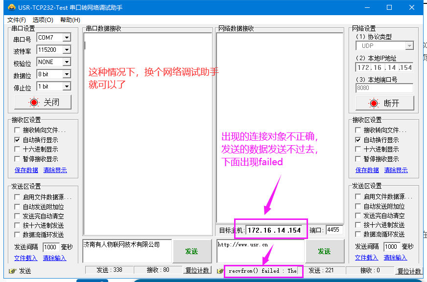 有時候小黃人網(wǎng)絡(luò)端出錯,建立不了連接。有可能是調(diào)試軟件的問題,換個網(wǎng)絡(luò)調(diào)試助手就可以了