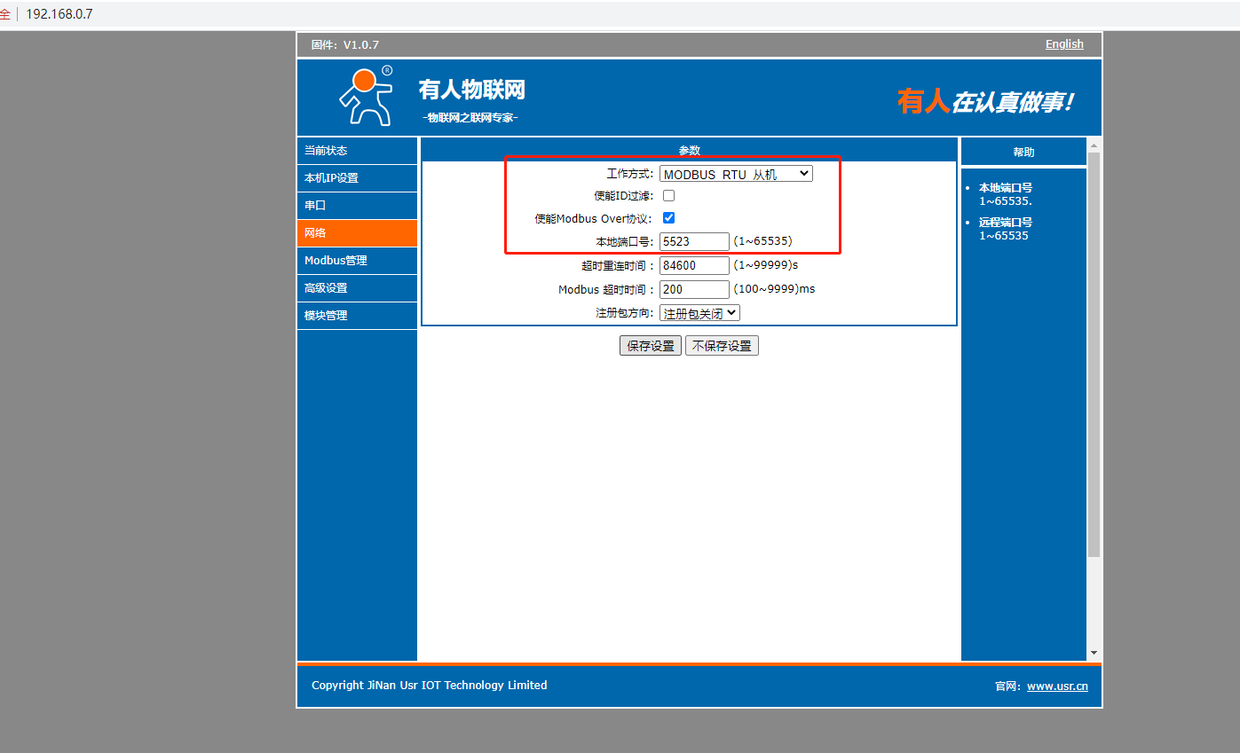必須勾選MODBUS OVER協(xié)議,保存重啟即可。