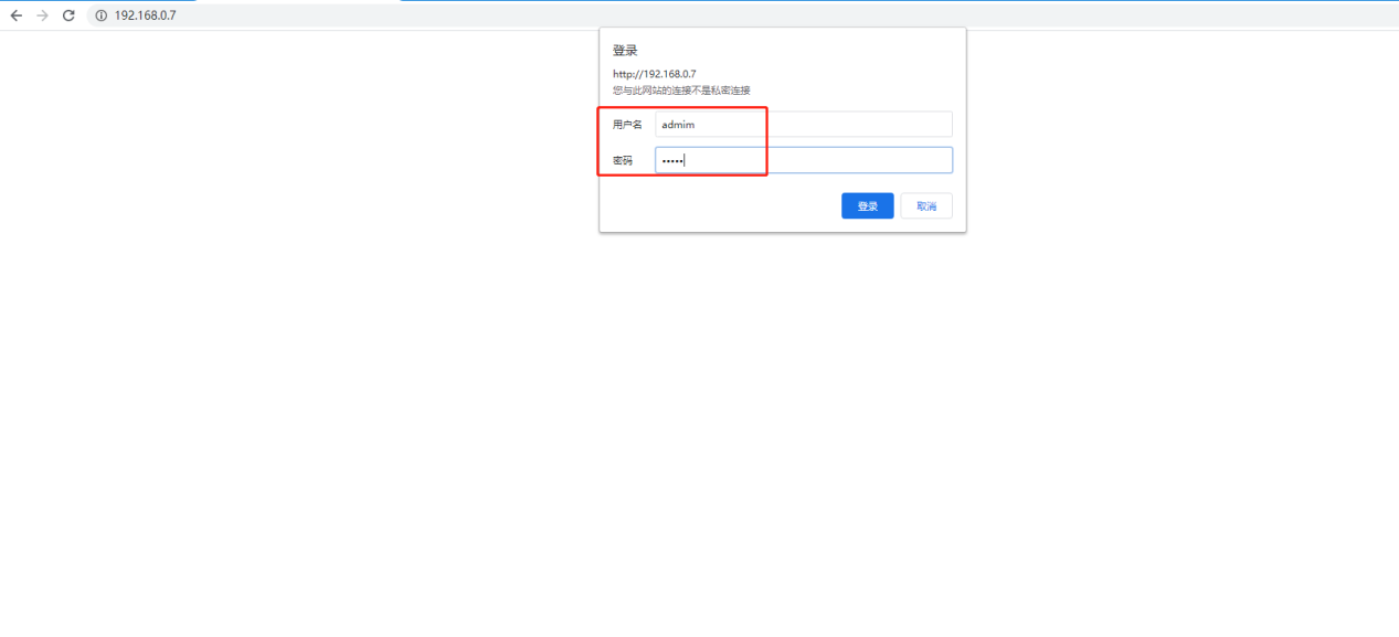 4. 進(jìn)入內(nèi)置網(wǎng)頁(yè)進(jìn)行設(shè)置,通過(guò)瀏覽器搜索設(shè)備IP,登錄用戶名與密碼未修改過(guò)可使用默認(rèn)的,用戶名與密碼都為admin