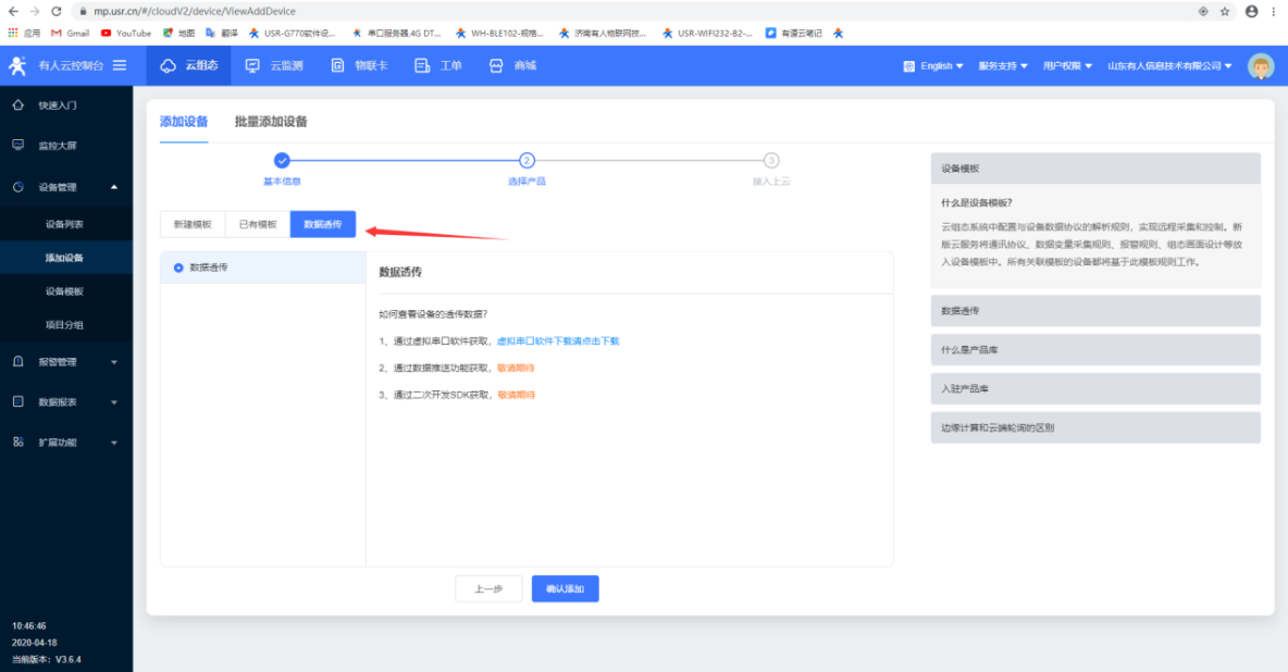 1.點(diǎn)擊添加設(shè)備,添加虛擬串口,點(diǎn)擊沒(méi)有SN,默認(rèn)生成設(shè)備編號(hào)和密碼