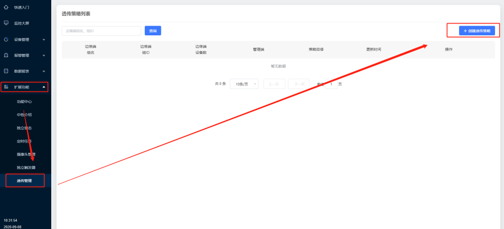 7.點(diǎn)擊擴(kuò)展功能,選擇透?jìng)鞴芾?,?chuàng)建透?jìng)鞑呗?/p>