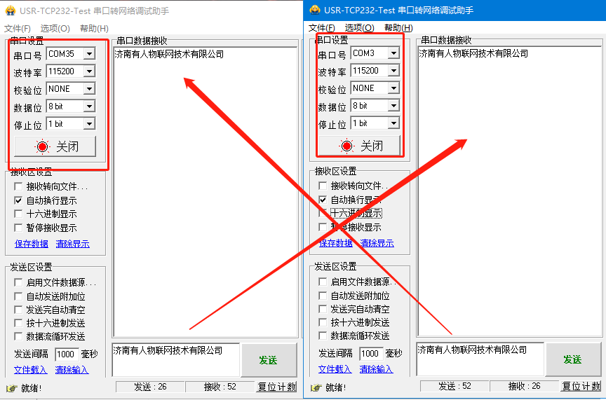 11.用串口調(diào)試助手打開(kāi)虛擬串口生成的串口和M511的串口(兩個(gè)串口參數(shù)必須相同),進(jìn)行數(shù)據(jù)互發(fā)