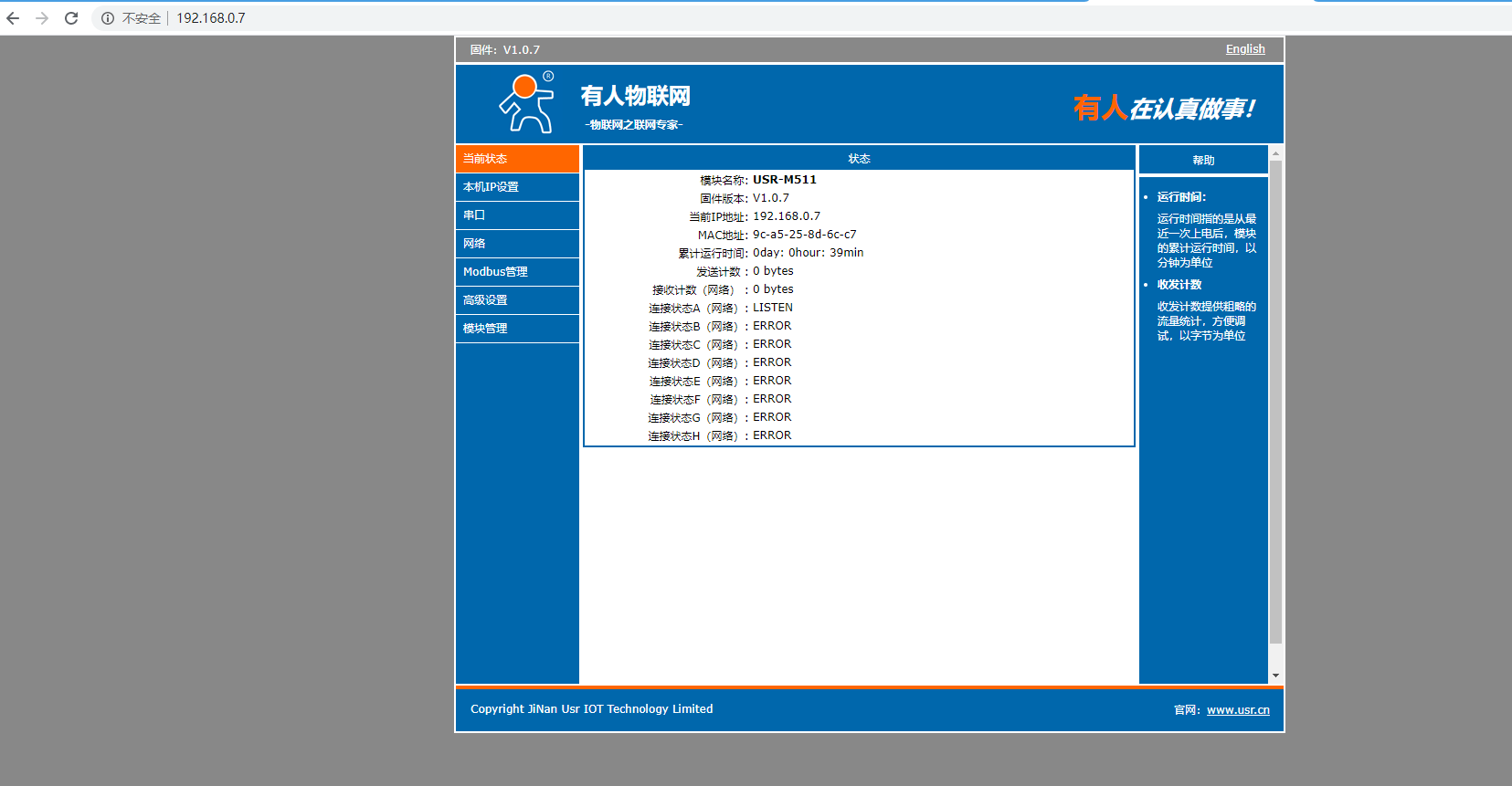 3. 瀏覽器輸入IP:192.168.0.7進入M511的內(nèi)置網(wǎng)頁,用戶名密碼默認為admin