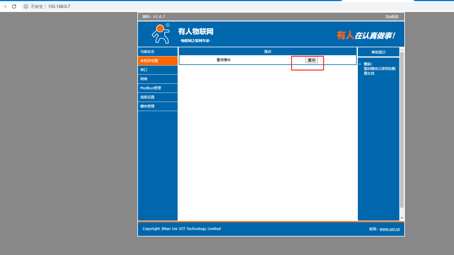 7. 設(shè)置串口的參數(shù),工作方式選擇MODBUS RTU主機,遠程服務(wù)器地址:clouddata.usr.cn,遠程端口:15000。一定要勾選MODBUS OVER協(xié)議。