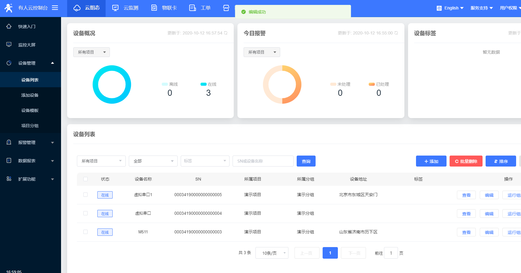 6.在云端可看到添加的虛擬串口上線
