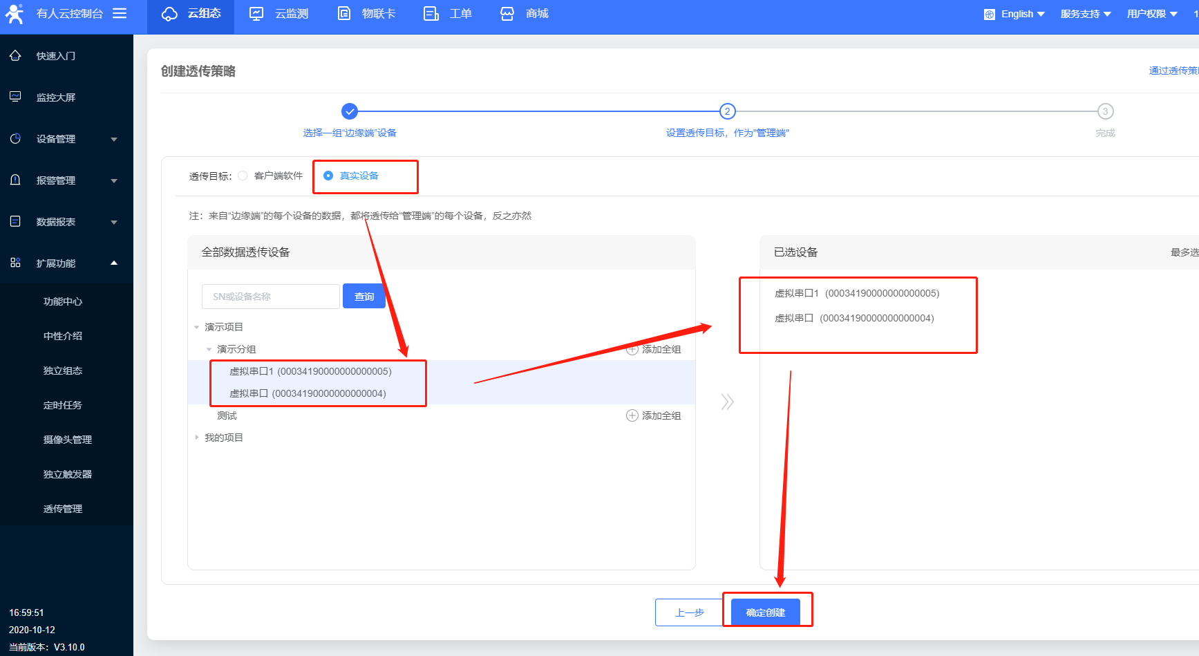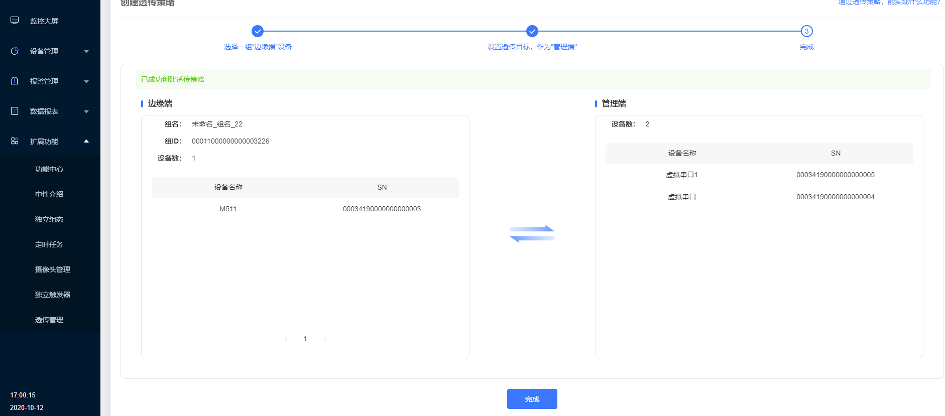 7.點擊擴展功能,選擇透傳管理,創(chuàng)建透傳策略