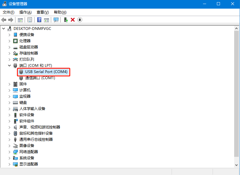 注:串口號可以在電腦的“設備管理器-端口”查看
