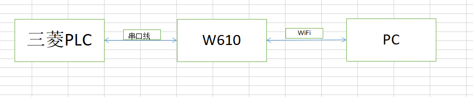 將串口服務(wù)器W610的串口通過(guò)232串口線連接三菱PLC,使用電源適配器給W610上電,電腦連接W610的WiFi,處于同一局域網(wǎng)