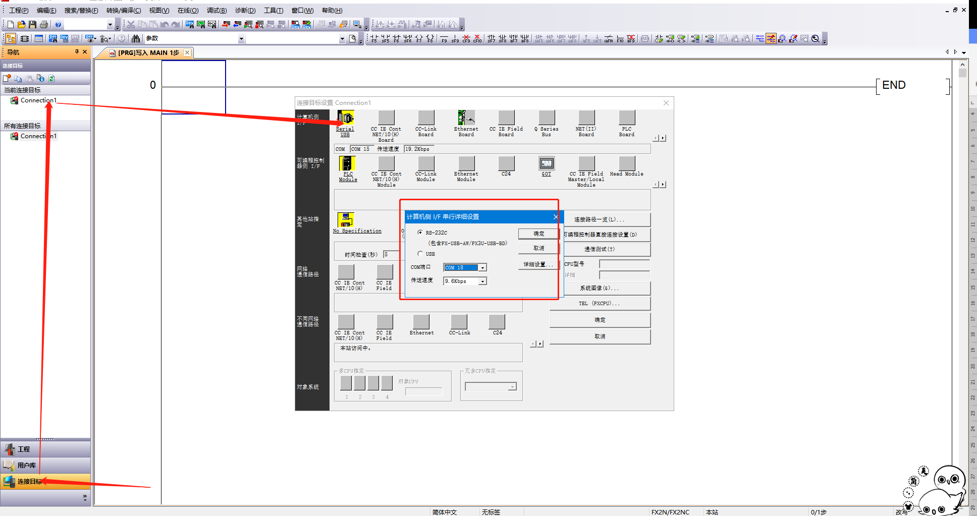 8.點(diǎn)擊連接目標(biāo),選擇生成的虛擬串口,波特率為PLC的波特率