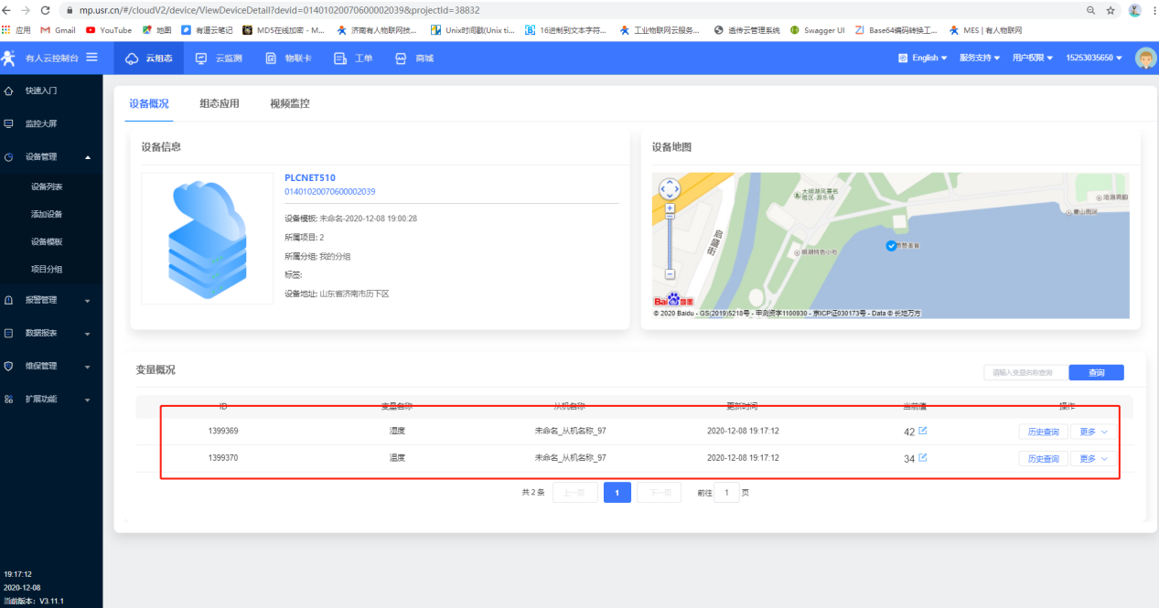 9.設(shè)備正常上線,可以看到采集到的數(shù)據(jù)點(diǎn)