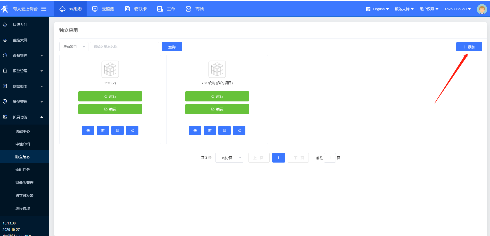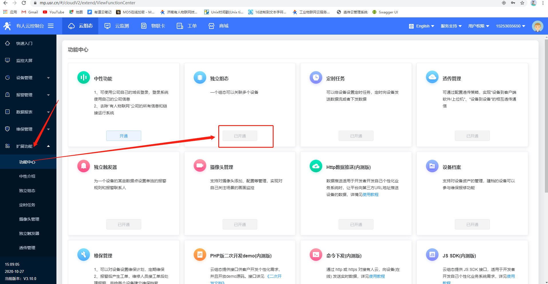 1.登錄有人云,擴展功能》功能中心》開通獨立組態(tài)