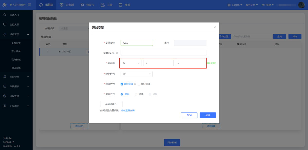 l 添加從機和變量(請注意串口序號的對應(yīng),從機地址是PLC內(nèi)部屬性,S7200默認(rèn)2)