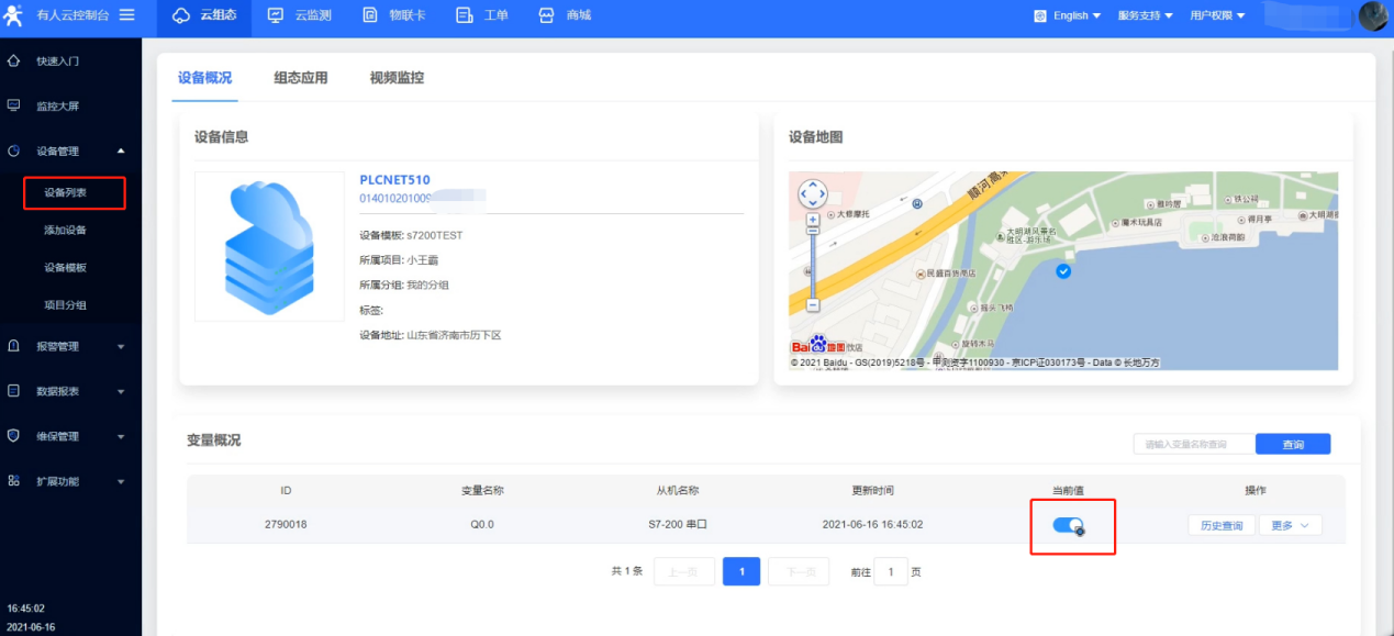 l 重啟完成后,觀察平臺數(shù)據(jù),采集成功