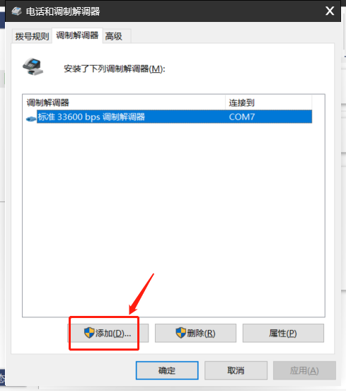 l 設(shè)置調(diào)制解調(diào)器,如果沒有則添加新的調(diào)制解調(diào)器。
