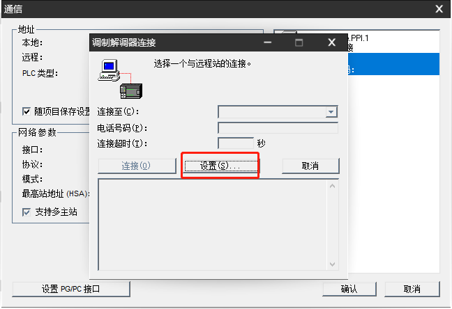 l 點擊項目列表中的“通信”-> “設(shè)置 PG/PC 接口”,通信串口選擇虛擬 COM 口,并選擇調(diào)制解調(diào)器模式。