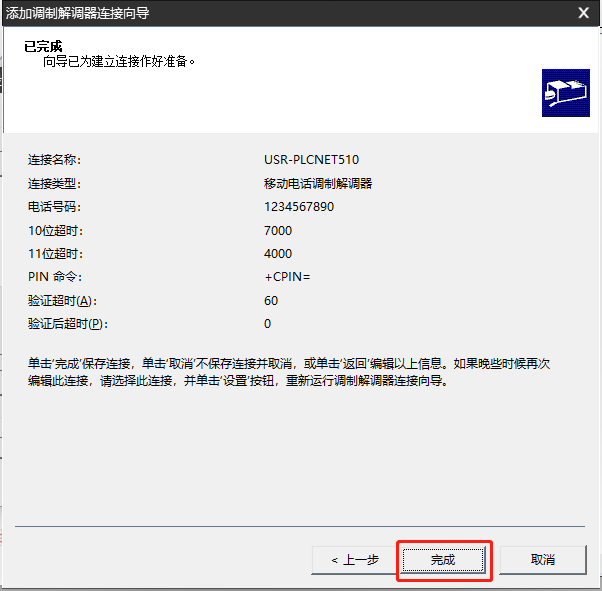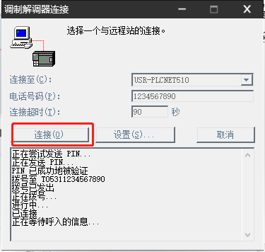 l 關(guān)閉調(diào)制解調(diào)器添加頁面,點擊連接,完成軟件與調(diào)制解調(diào)器的連接;連接完成之后此頁面自動關(guān)閉;
