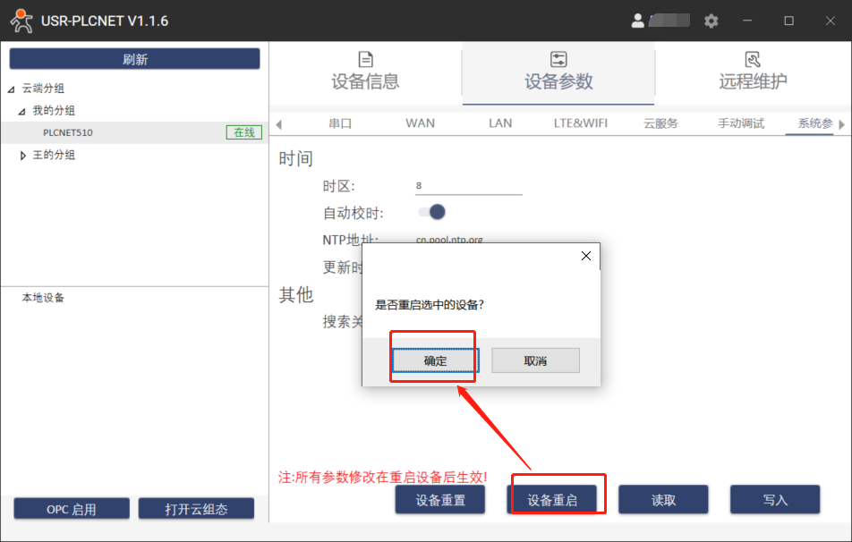 l 重啟設(shè)備(設(shè)備內(nèi)參需要重啟才能生效)
