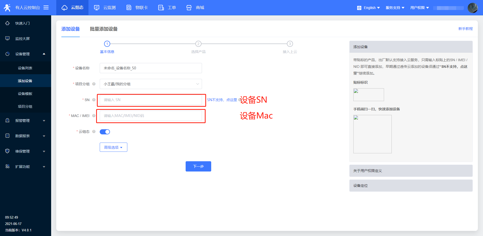 四、添加設(shè)備至有人云