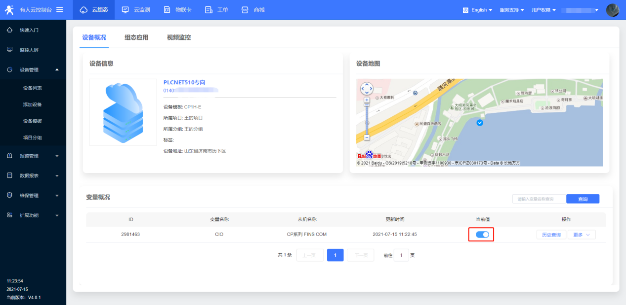 ? 重啟完成后,觀察平臺數(shù)據(jù),采集成功(數(shù)據(jù)采集時請不要打開遠(yuǎn)程維護(hù)的透傳功能)