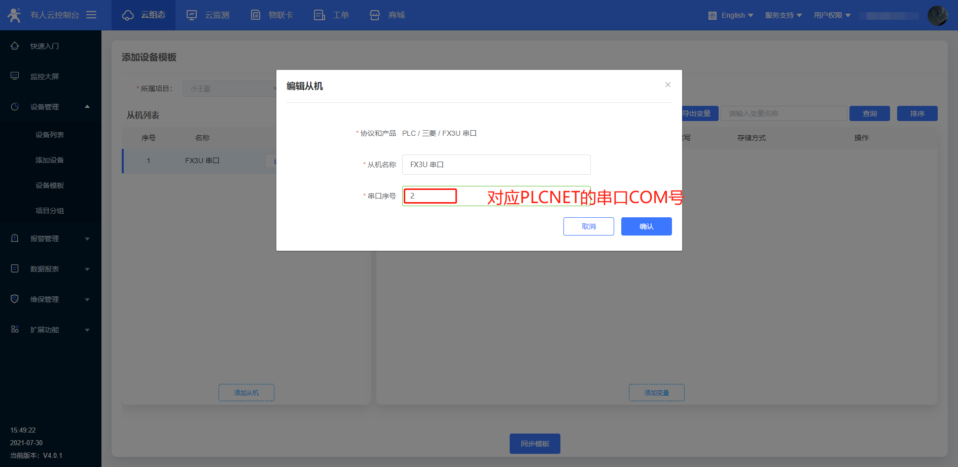 ? 添加從機(jī)-填寫串口序號(對應(yīng)PLCNET510的COM號)
