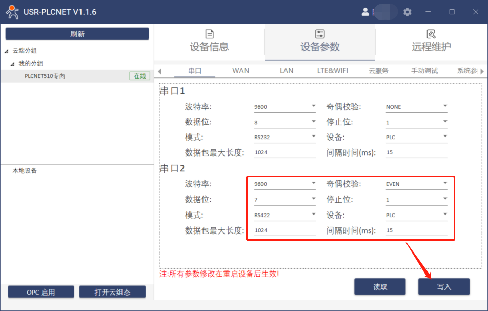 ? 設(shè)置串口參數(shù):422模式(直連PLC圓孔串口時)-9600bps-EVEN-7-1(FX 3U默認(rèn)串口參數(shù))