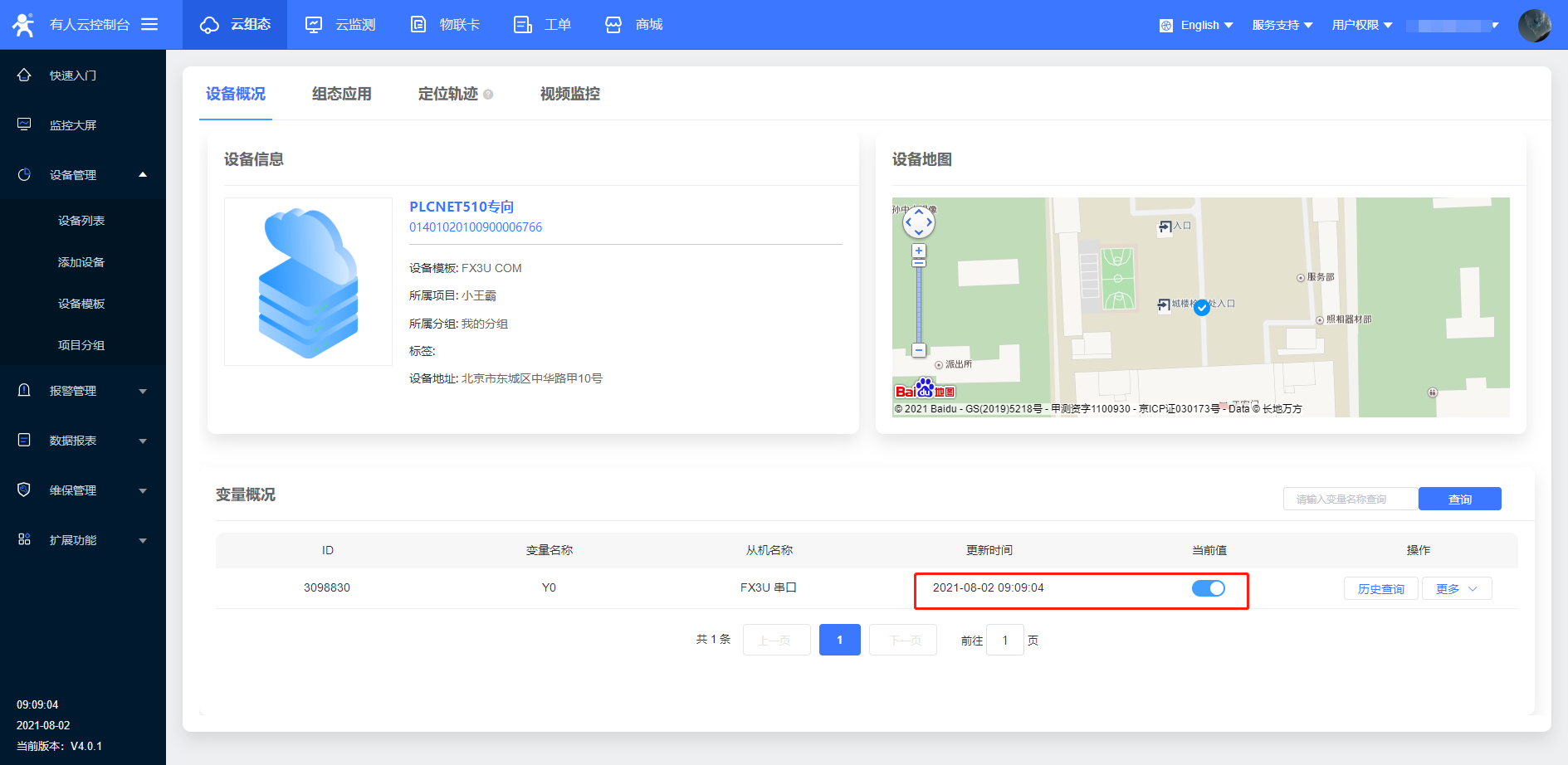 ? 重啟完成后,觀察平臺數(shù)據(jù),采集成功(數(shù)據(jù)采集時請不要打開遠(yuǎn)程維護(hù)的透傳功能)