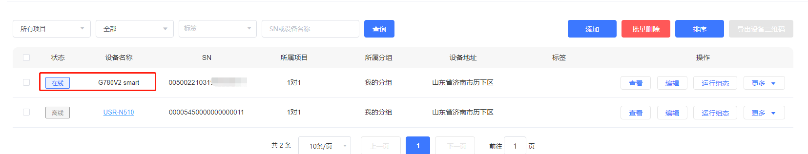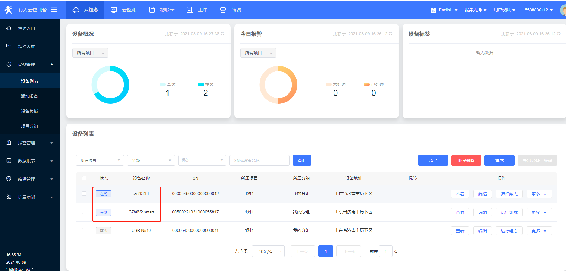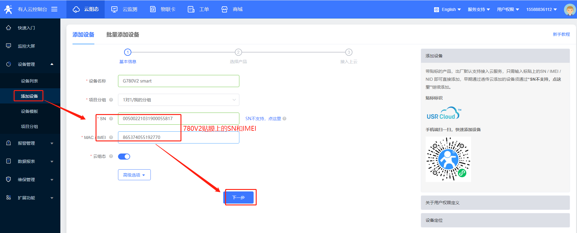 780V2端不用特殊設(shè)置,在云端添加設(shè)備后,重啟下G780V2,等待設(shè)備上線即可