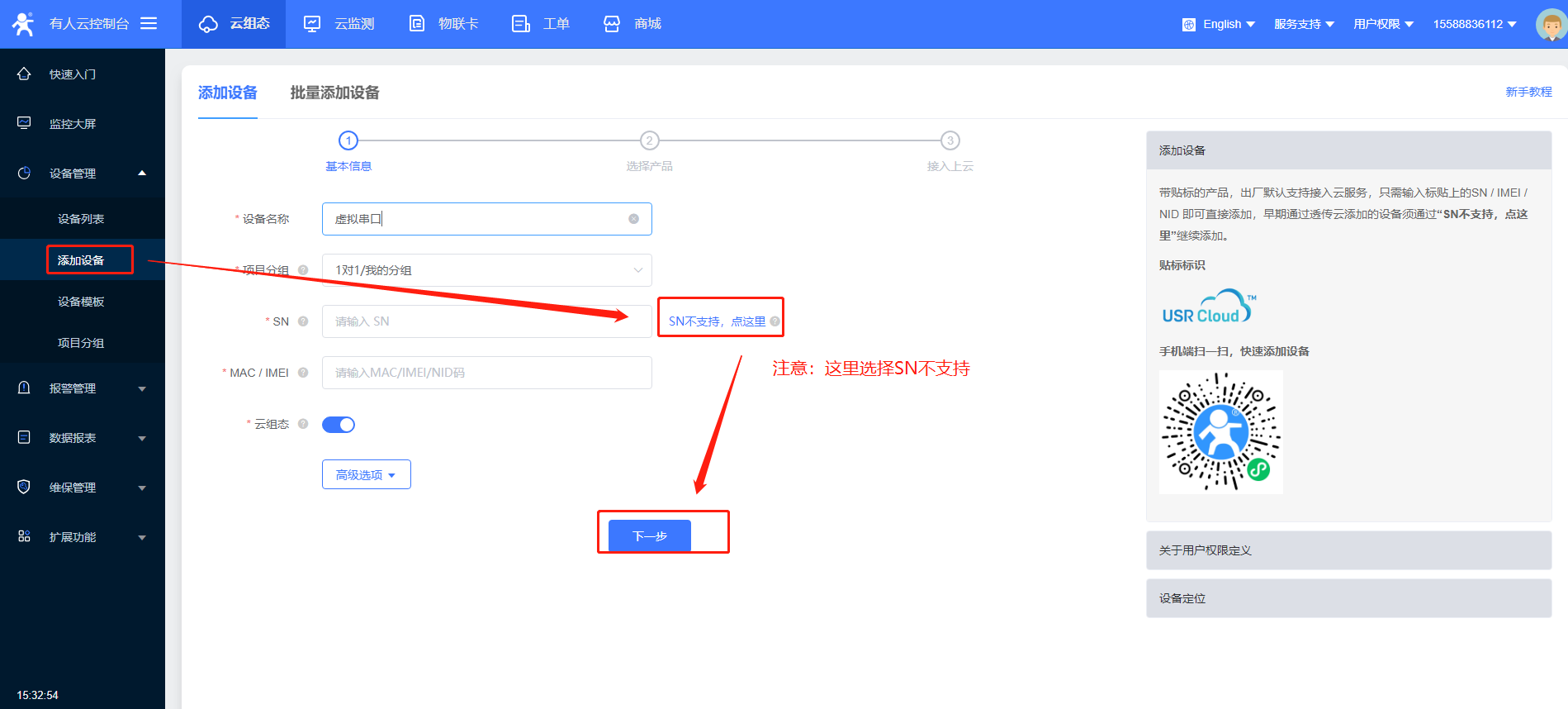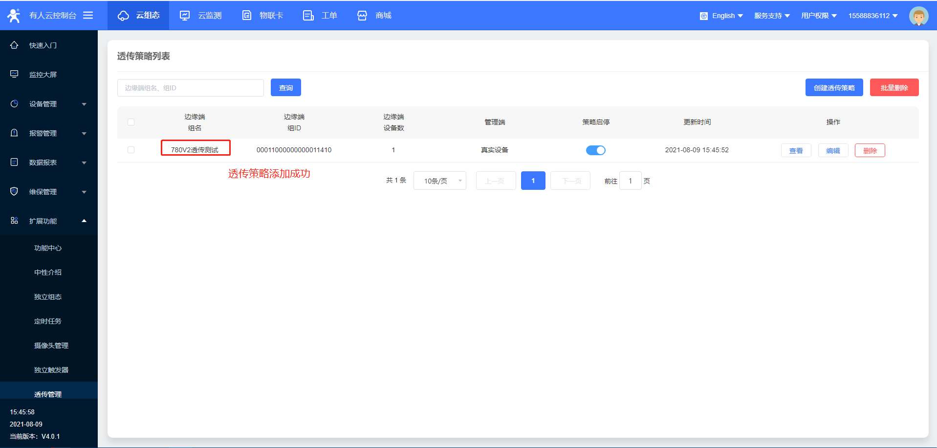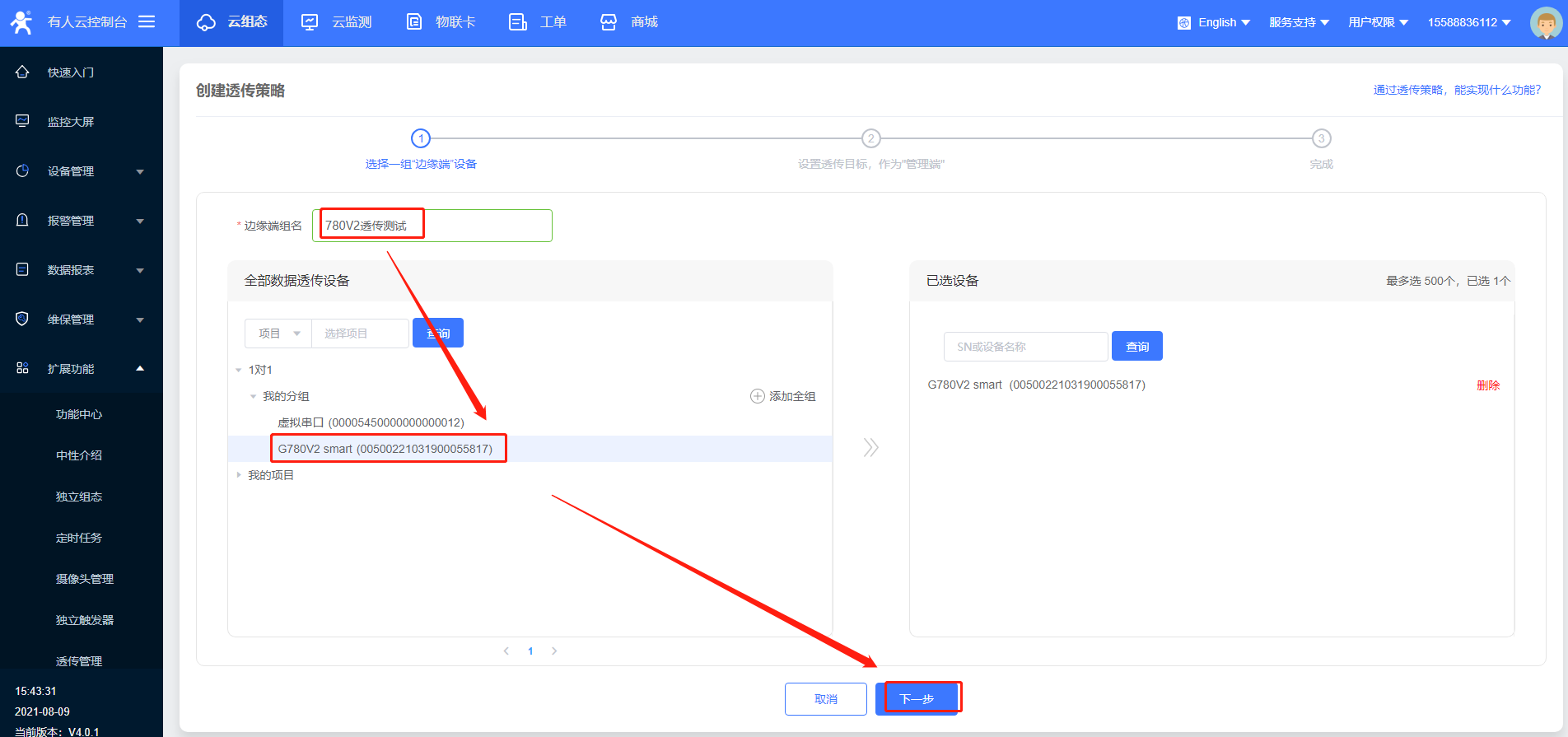 780V2端不用特殊設(shè)置,在云端添加設(shè)備后,重啟下G780V2,等待設(shè)備上線即可