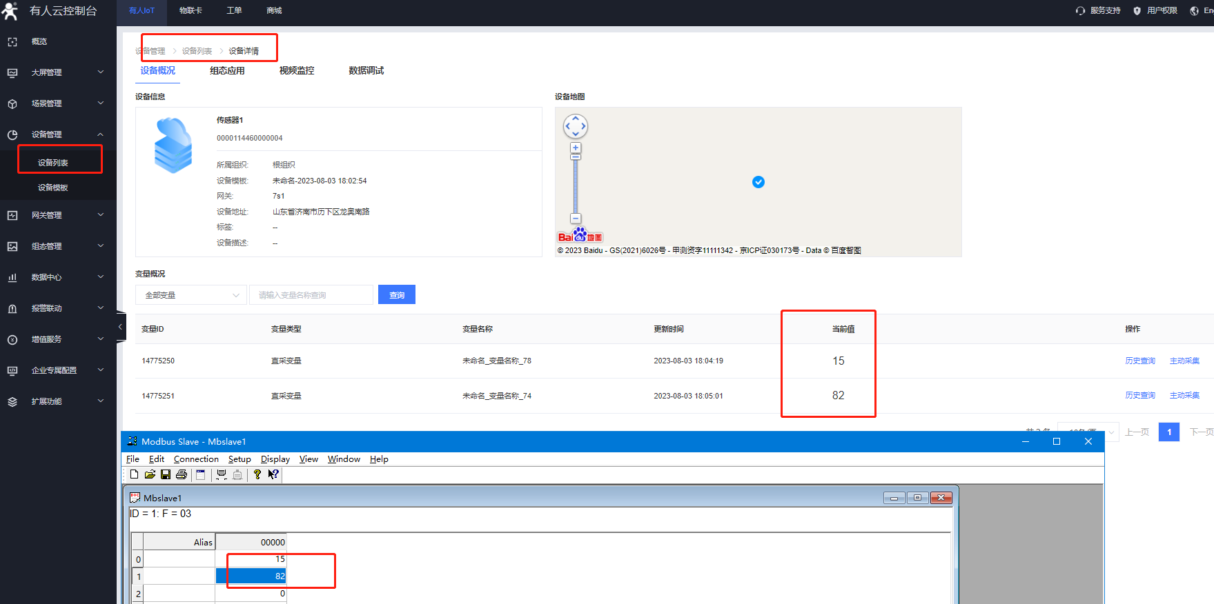 設備列表可以看到云端采集的從機數(shù)據(jù)。
