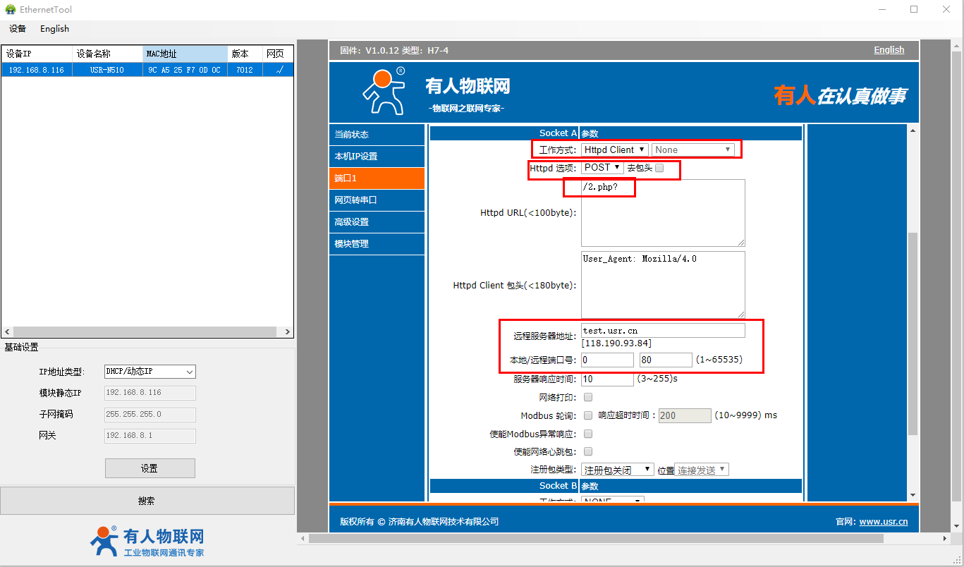 USR-N510-H7 HTTPD POST模式測(cè)試案例