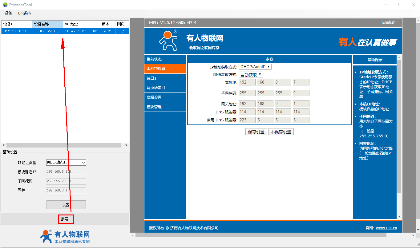 2、USR-N510-H7設(shè)置軟件http://helipaomo.cn/Download/383.html