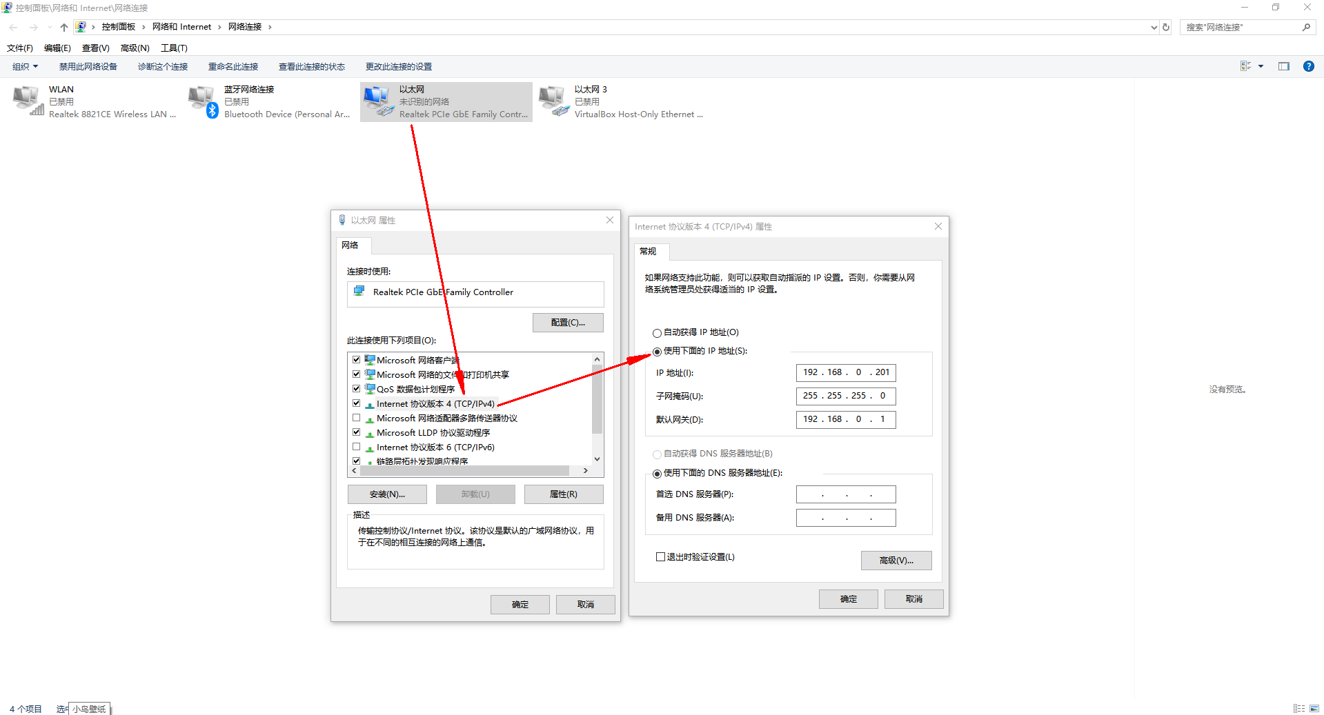 1)電腦本地連接,IP設(shè)置和N510 IP同網(wǎng)段,N510默認(rèn)IP是192.168.0.7,網(wǎng)關(guān)192.168.0.1,電腦本地連接IPv4設(shè)置靜態(tài)IP,192.168.0.201,子網(wǎng)掩碼255.255.255.0,網(wǎng)關(guān)192.168.0.1。禁用其他網(wǎng)卡。