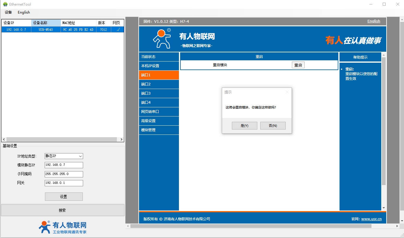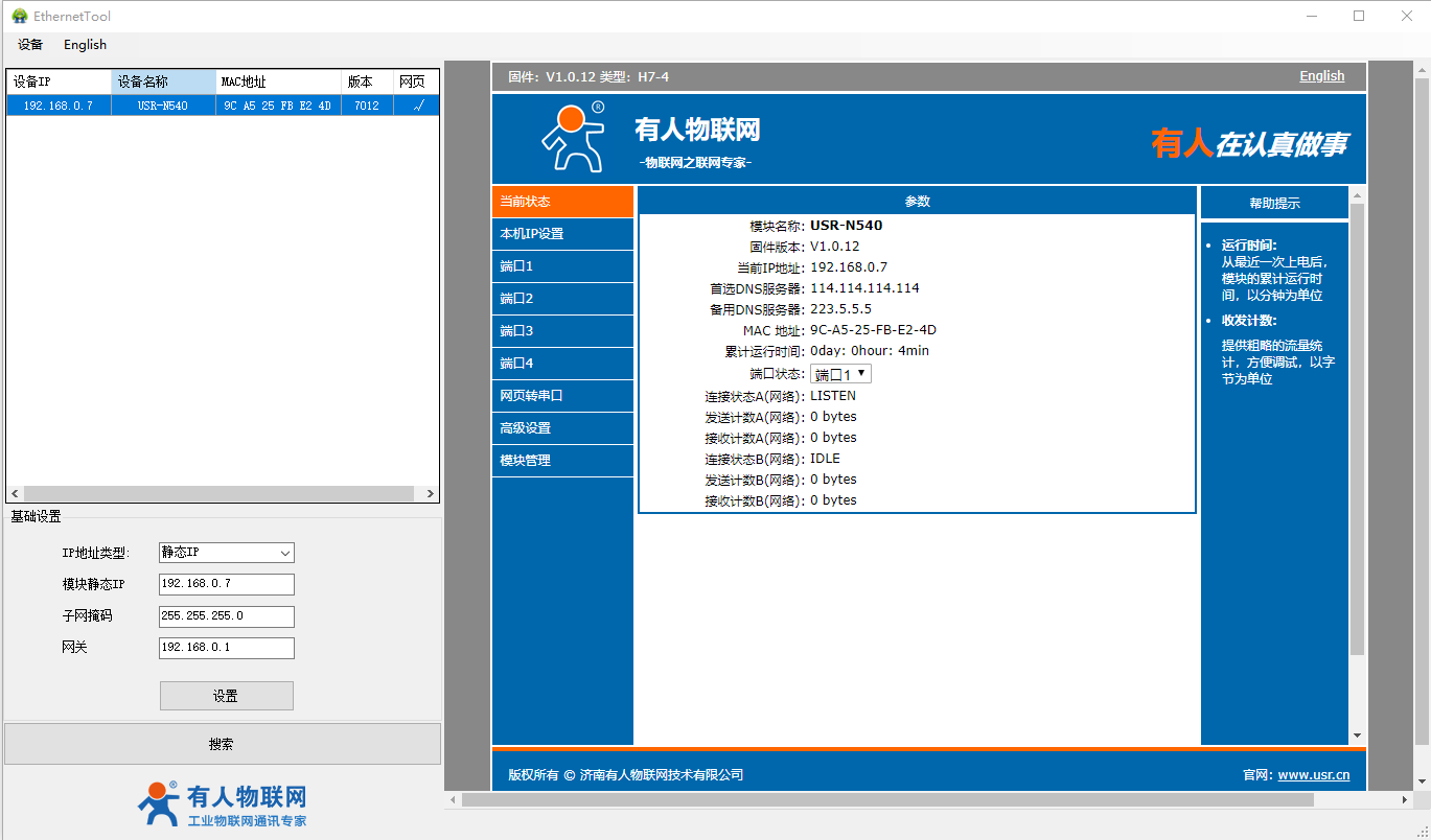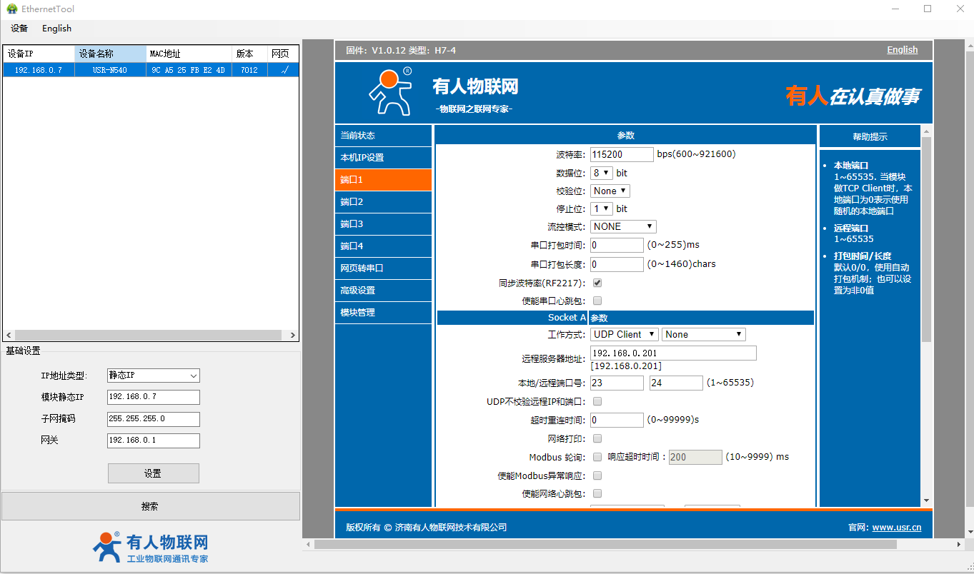 2、USR-N540-H7設置軟件http://helipaomo.cn/Download/383.html
