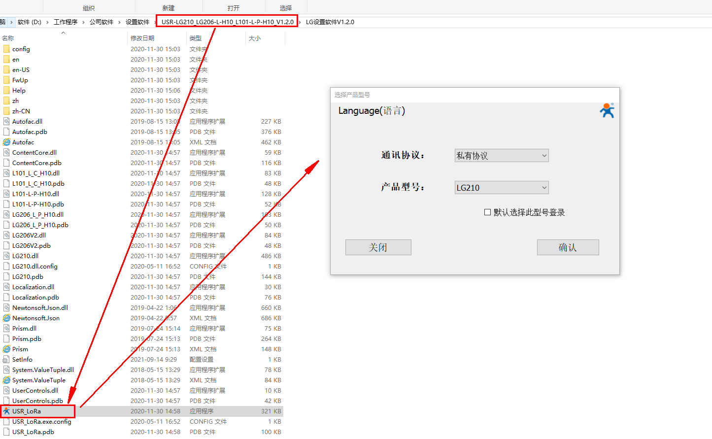 電腦下載并安裝USR-LG210-L的設(shè)置軟件,USR-LG210_LG206-L-H10_L101-L-P-H10_V1.2.0,解壓縮后放在電腦桌面。