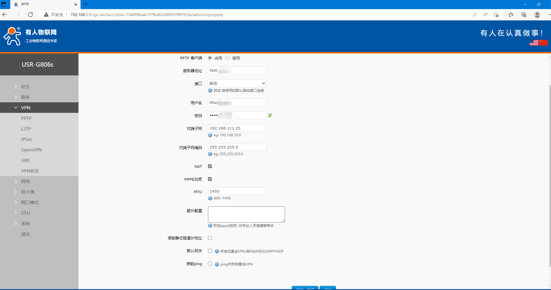 設(shè)置VPN服務(wù)器參數(shù),本案例用的是我司的測(cè)試服務(wù)器
