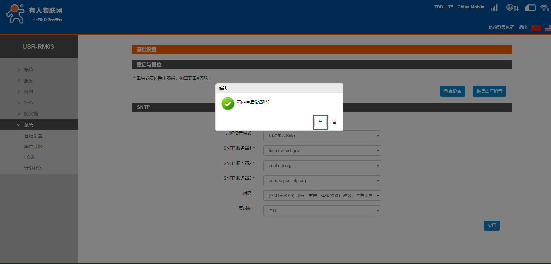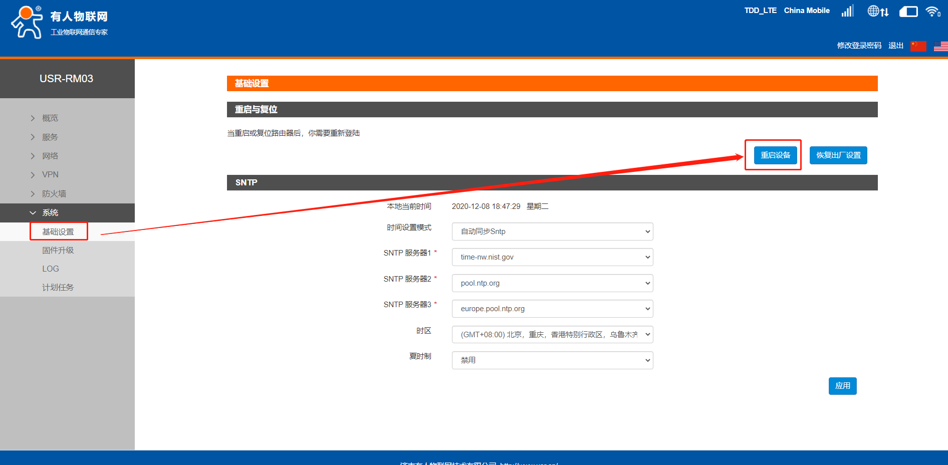 6、設(shè)置完參數(shù)后點(diǎn)擊系統(tǒng)--基礎(chǔ)設(shè)置--重啟設(shè)備。