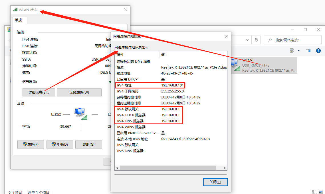 7、參數(shù)應(yīng)用完畢后,重新連接有線或者WiFi,重新查看對(duì)應(yīng)的網(wǎng)絡(luò)適配器,則可以看到PC獲取到的IP網(wǎng)段為剛剛修改后的網(wǎng)段