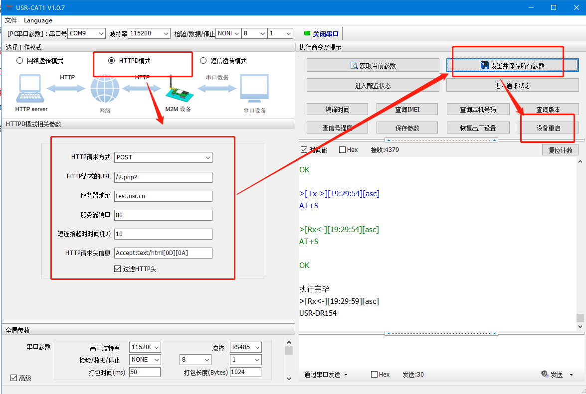 USR-DR154/152的http POST模式測試通訊和使用案例