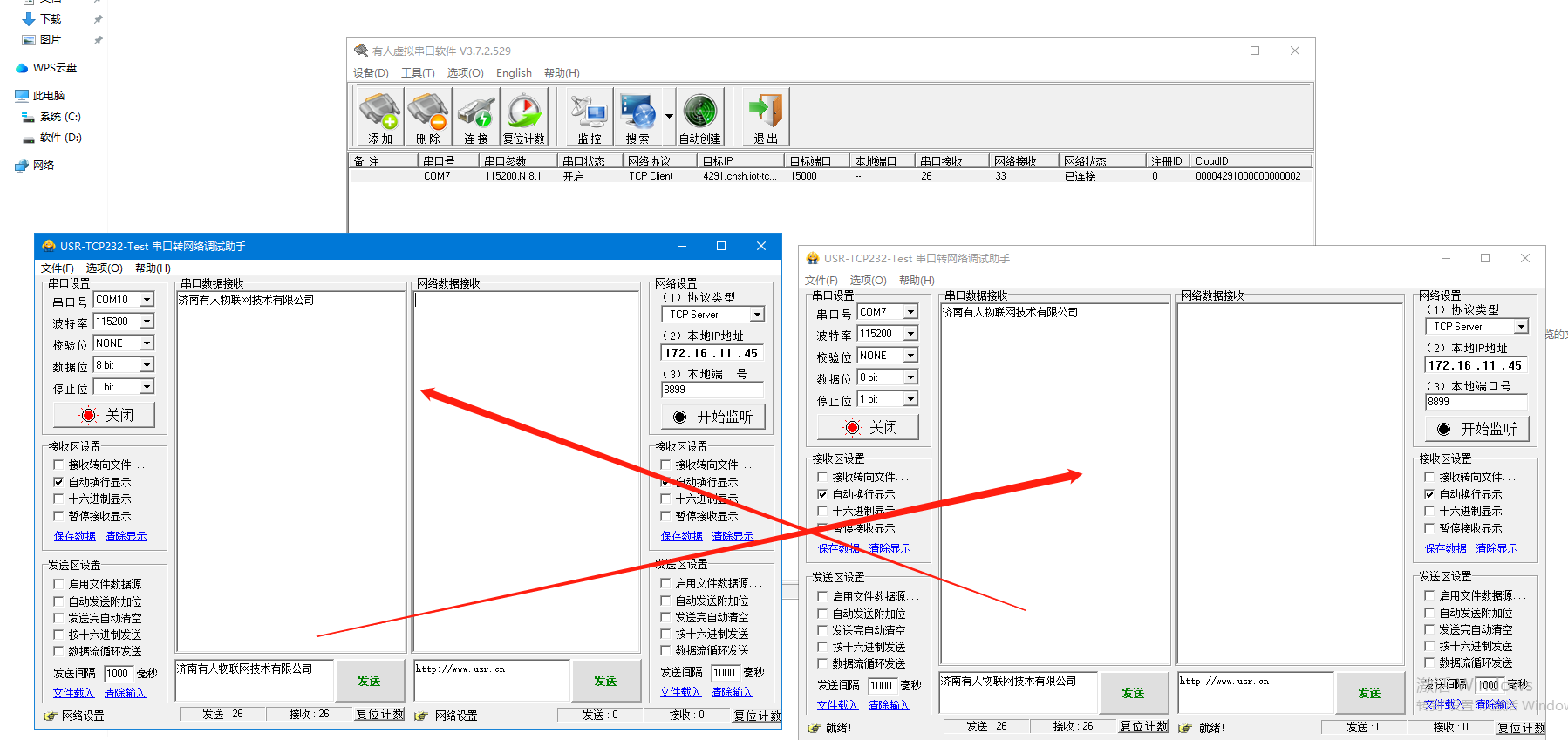 有人產(chǎn)品ID上云和虛擬串口軟件一對一通訊示例