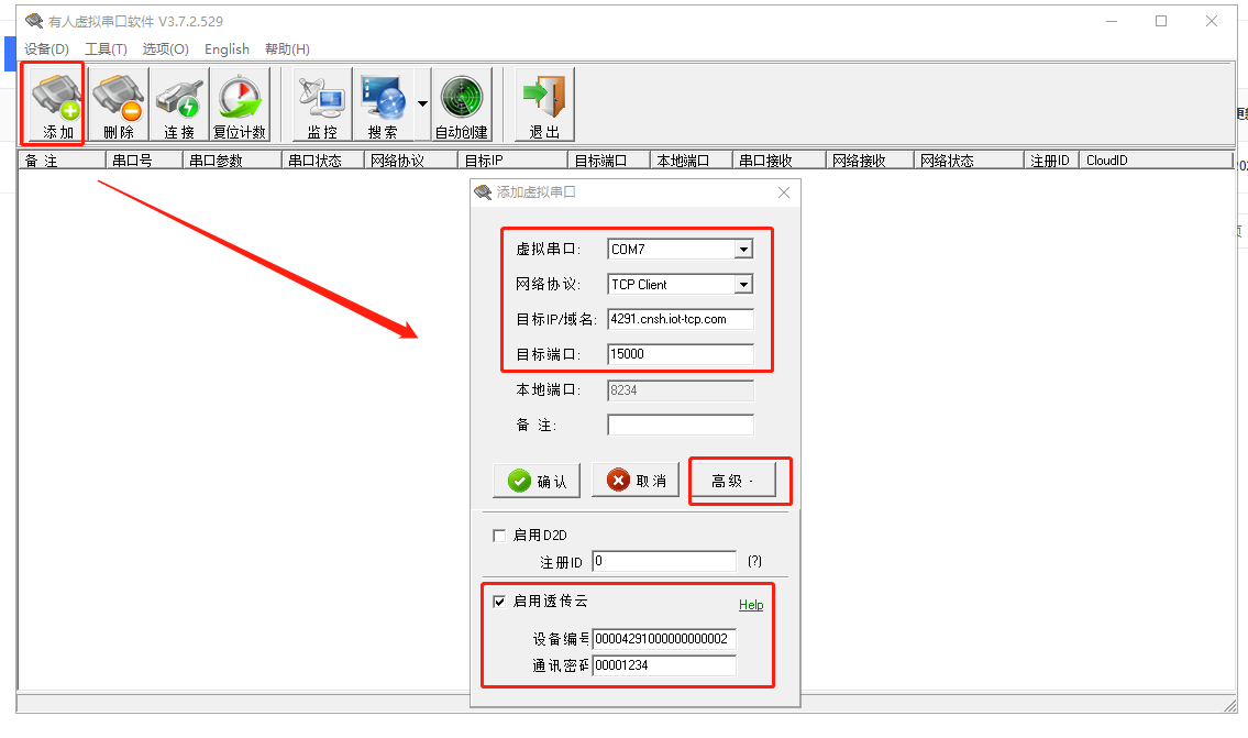 有人產(chǎn)品ID上云和虛擬串口軟件(V3版本)一對一通訊
