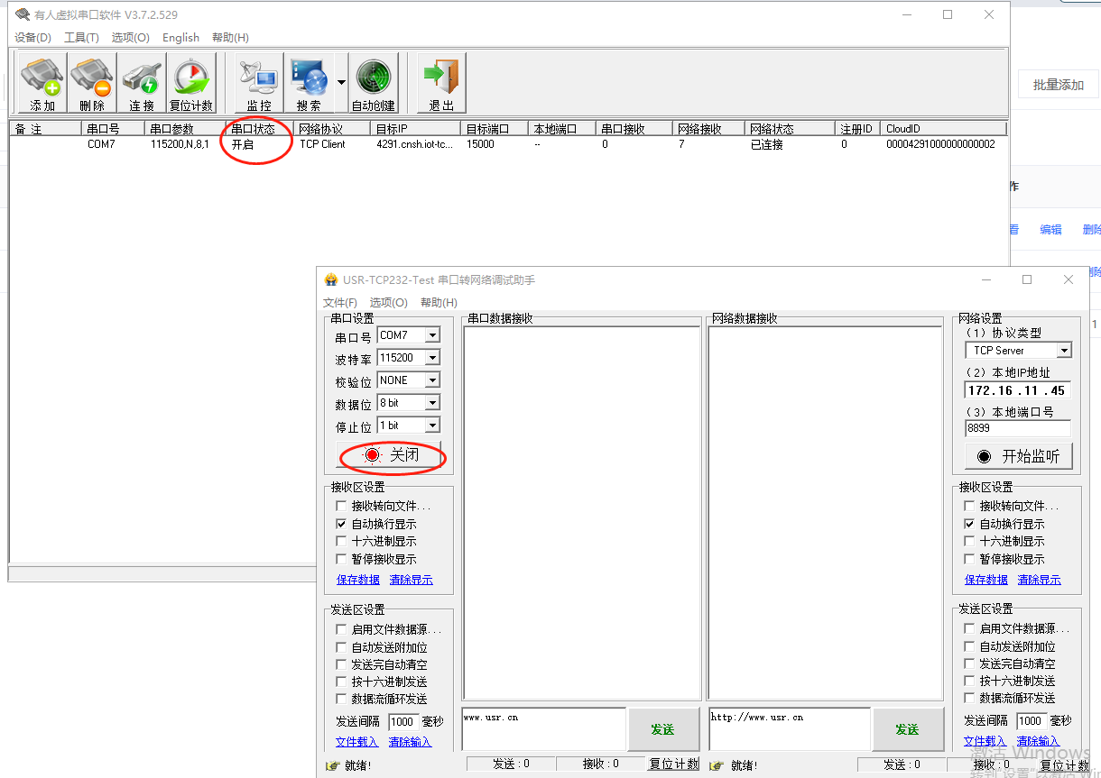有人產(chǎn)品ID上云和虛擬串口軟件(V5版本)一對一通訊