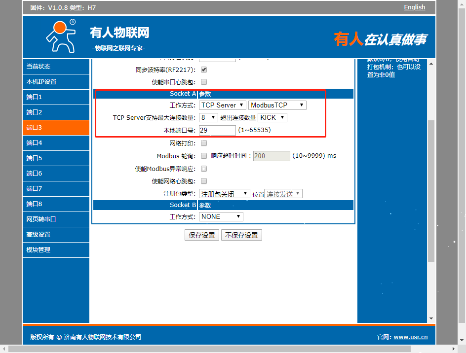 USR-N580-H7 MODBUS網(wǎng)關(guān)功能