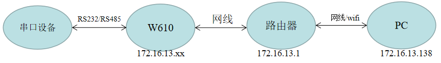 1>硬件連接:W610的串口通過(guò)USB轉(zhuǎn)232/485連接到電腦上,接上wifi天線,供電