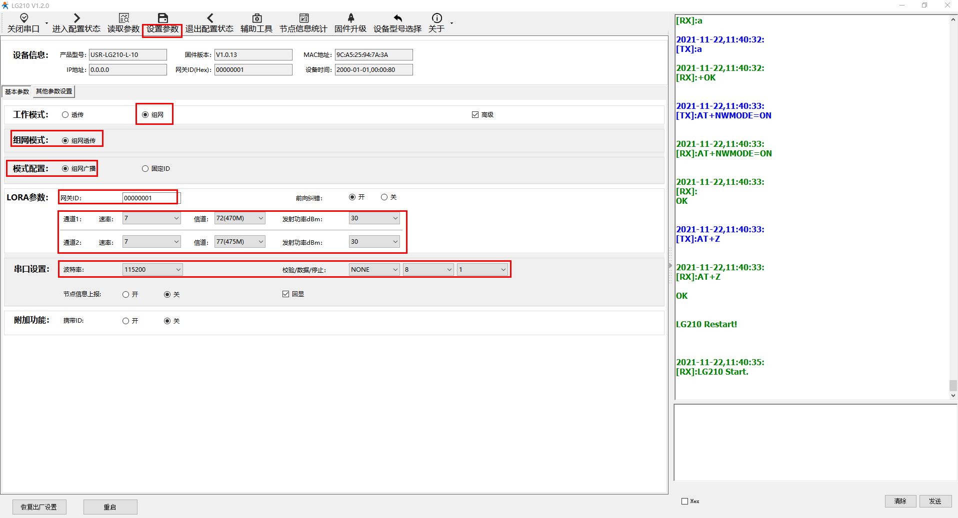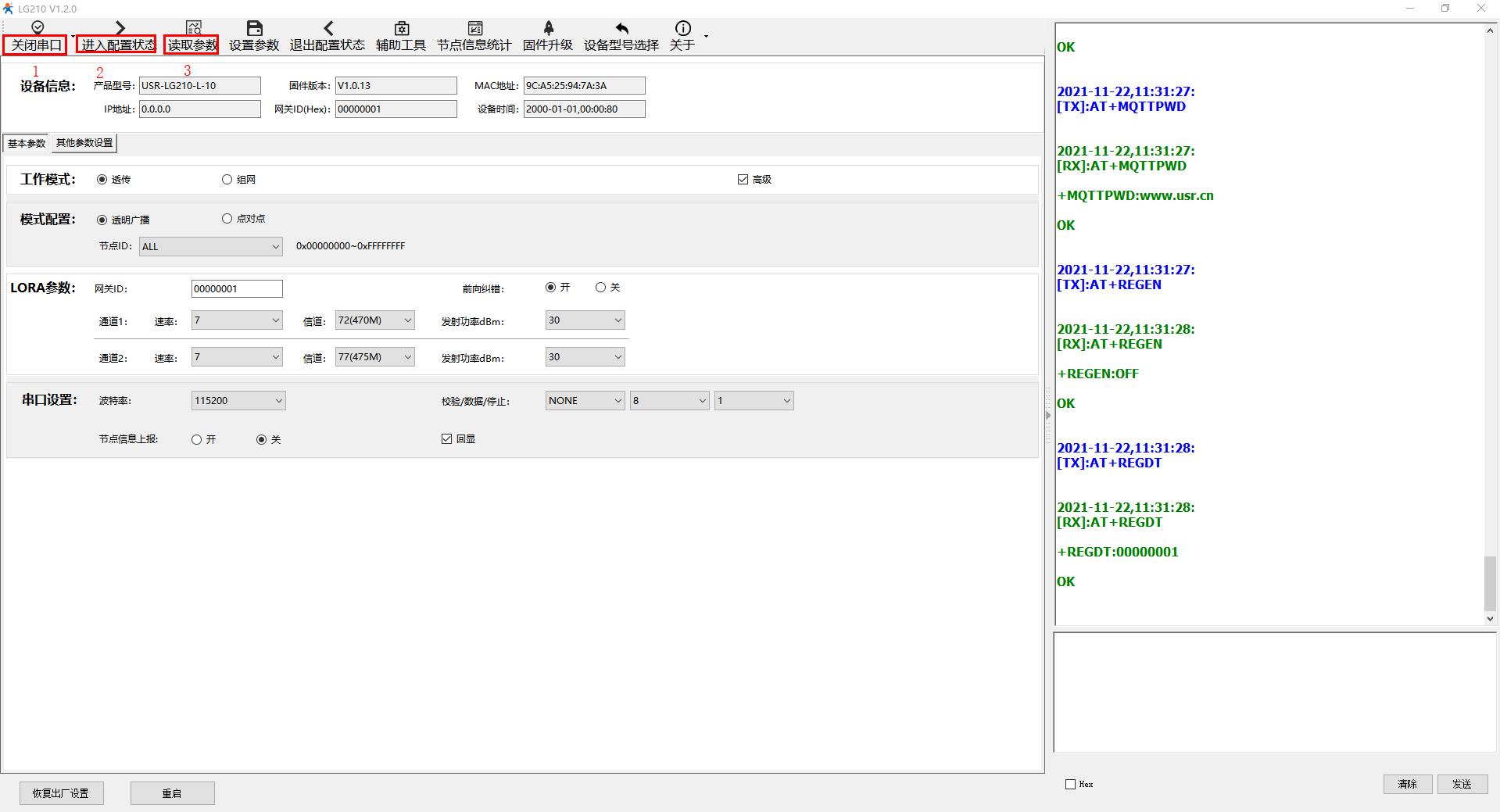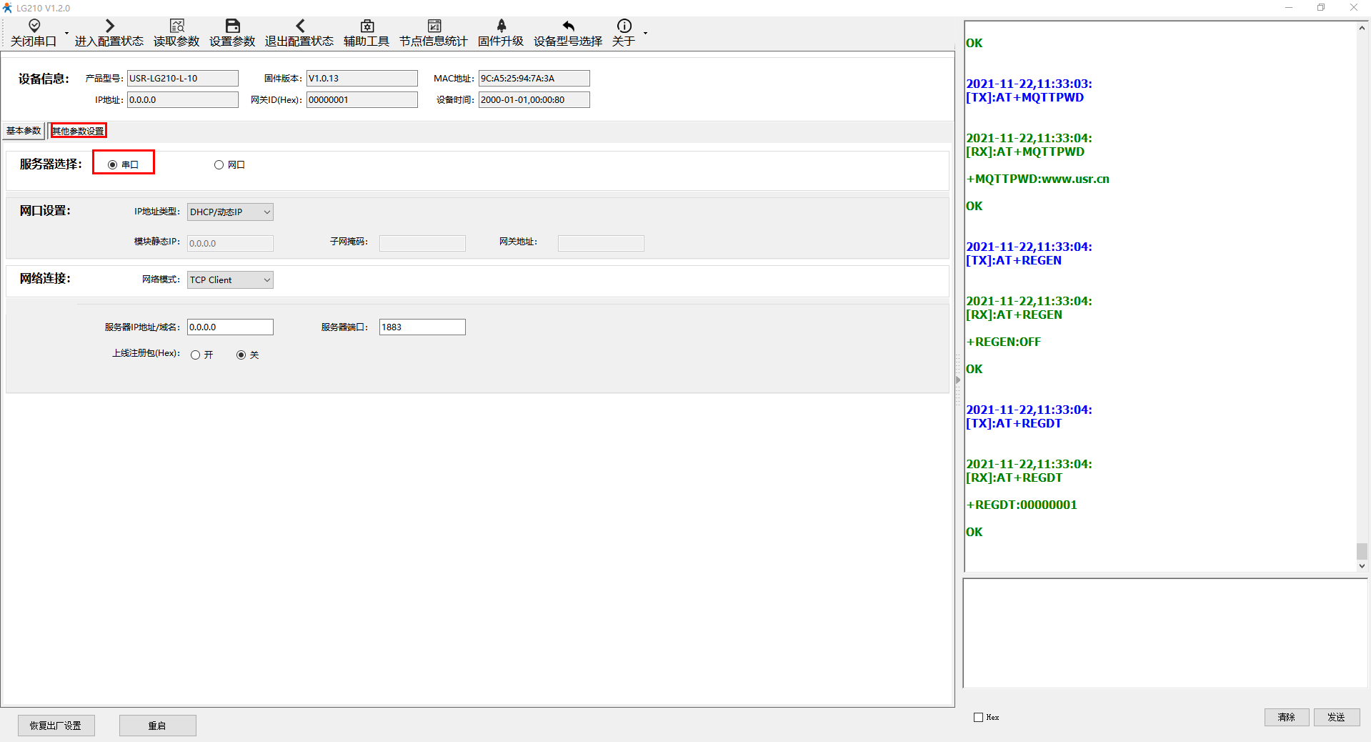 四、USR-LG210參數(shù)設(shè)置: