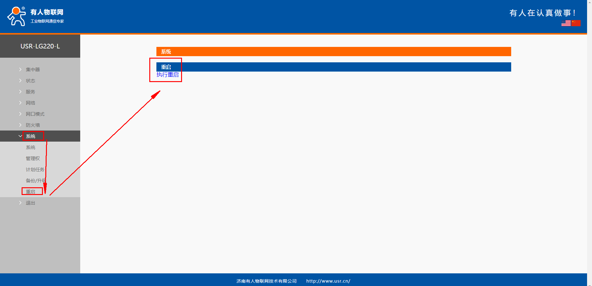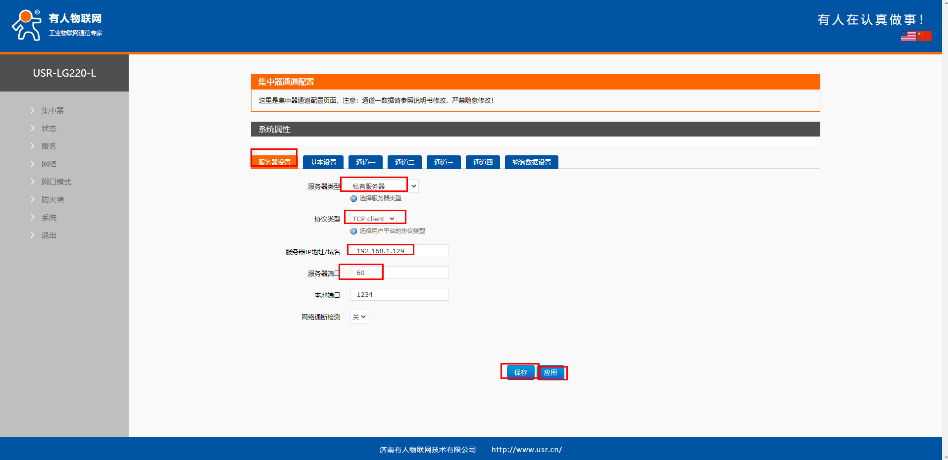 瀏覽器輸入USR-LG220默認IP,192.168.1.1,密碼是root ,登錄USR-LG220內置網頁。
