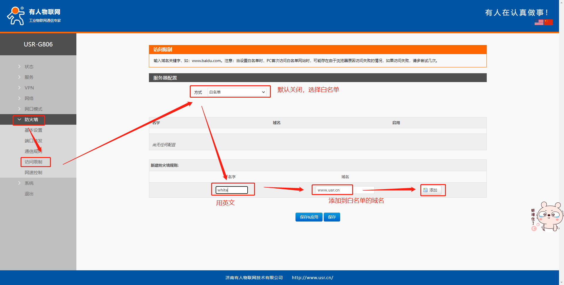 2設(shè)置域名白名單,注意:最后一定要“保存&應(yīng)用”,參數(shù)才會生效
